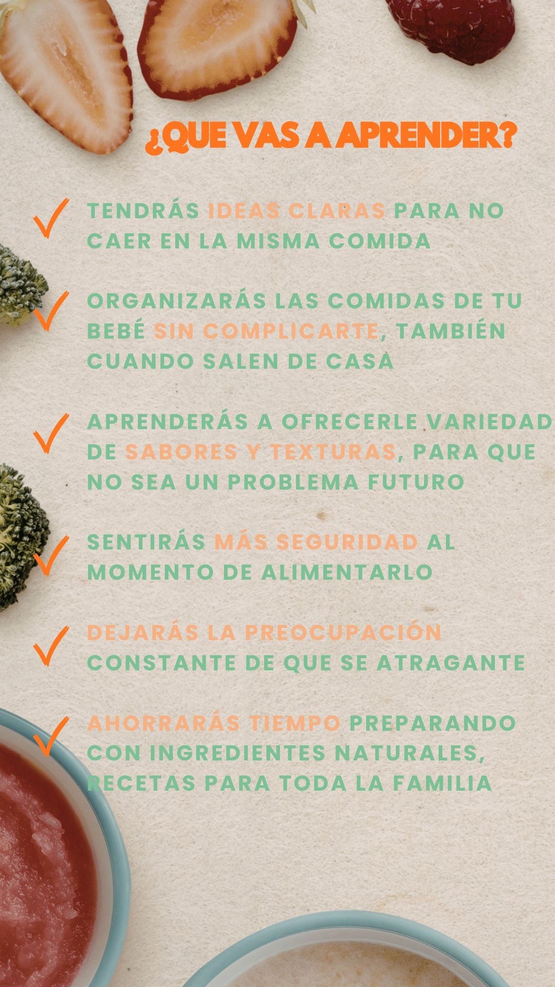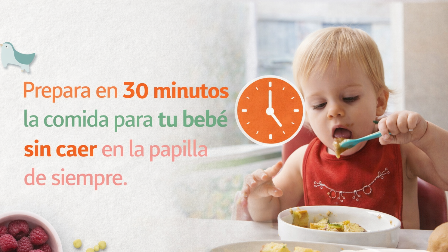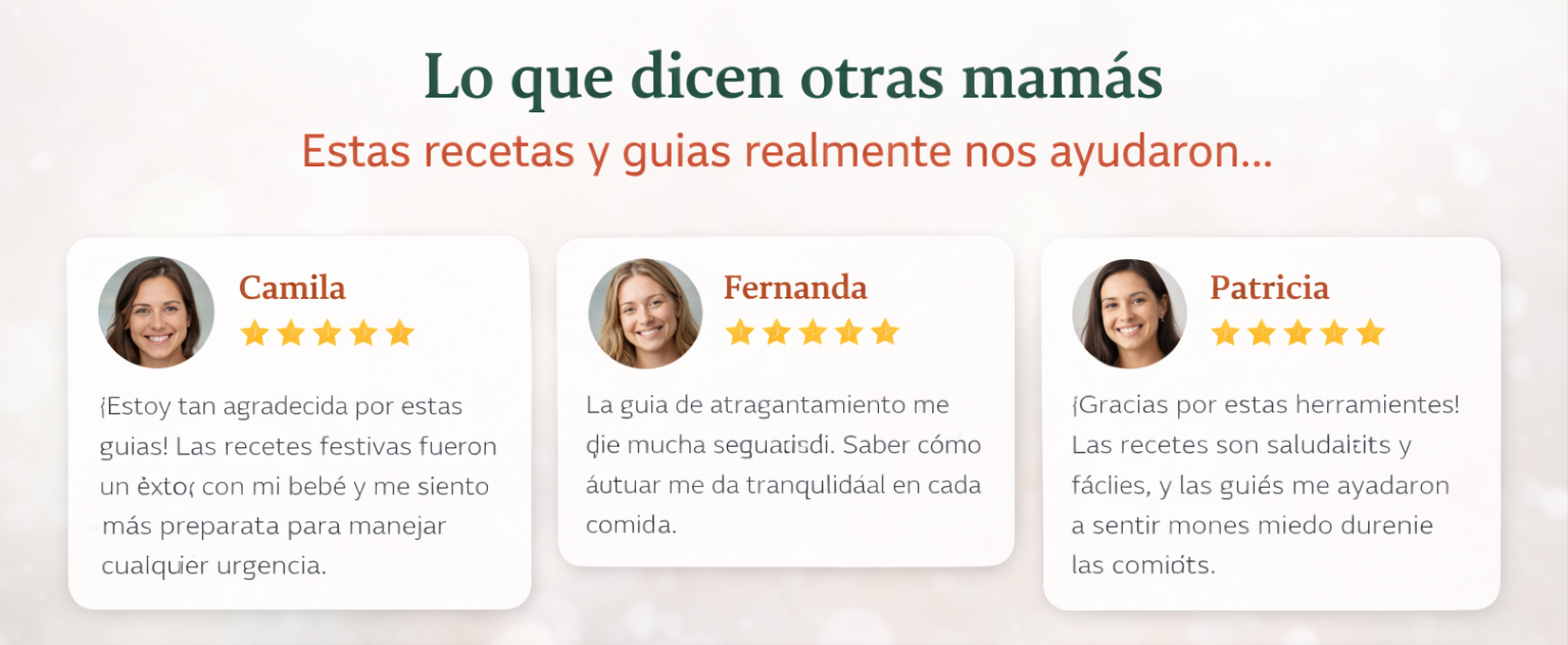 🍼 Sí. Incluye opciones simples de 30 minutos y adaptables, ideales para primeros pasos en la alimentación, además del bonus de primeros pasos en BLW para que sepas cómo ofrecer los alimentos con más confianza.